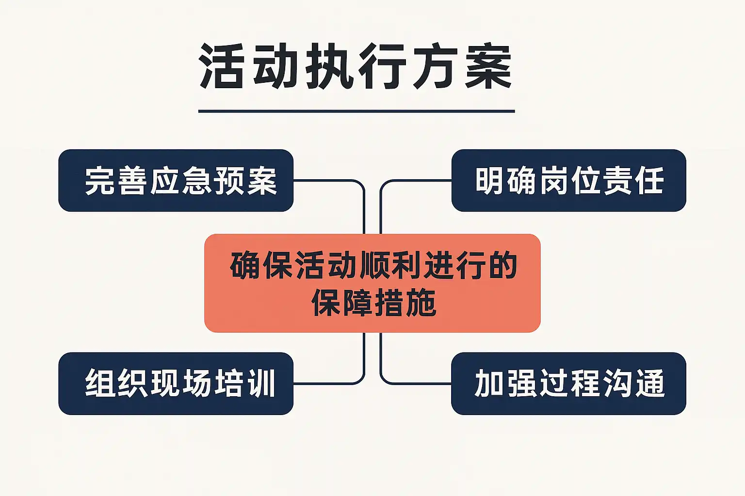 | 执行流程 | 时间表、关键节点、人员分工 | 细化步骤,防止遗漏 |