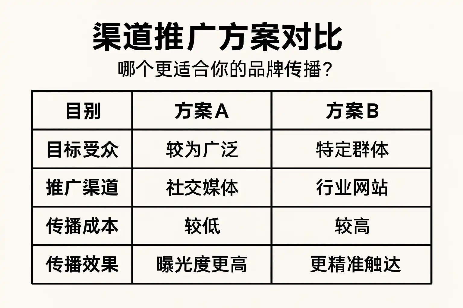 《渠道推广方案对比解析,哪个方案最适合你的品牌传播?》