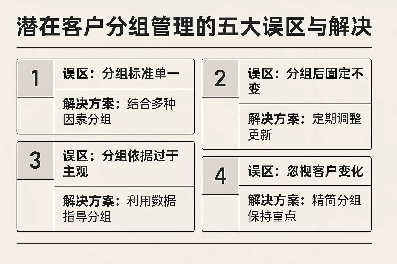我在做潜在客户分组管理时,常听说有一些误区会影响效果,但具体有哪些误区呢?我想了解这些误区,避免在实际操作中踩坑。