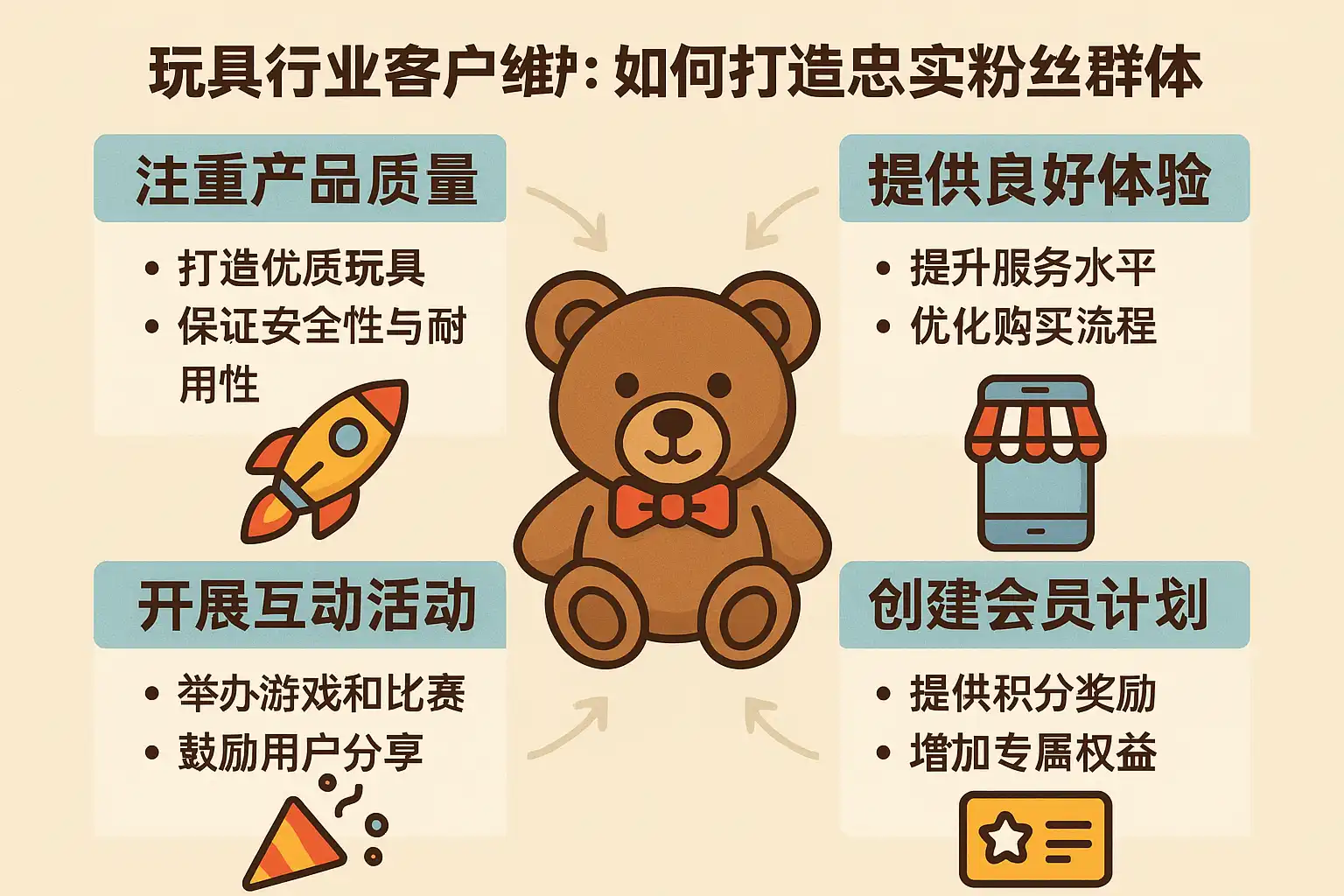 - 优质售后服务:快速响应客户问题,提升满意度。案例显示,实施会员计划的玩具品牌客户复购率提升30%以上。