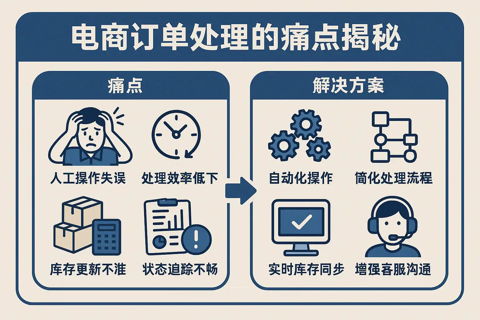 作为一名电商运营,我常常遇到订单处理过程中出现各种问题,导致发货延迟和客户投诉。我想知道电商订单处理环节中最常见的痛点具体有哪些?