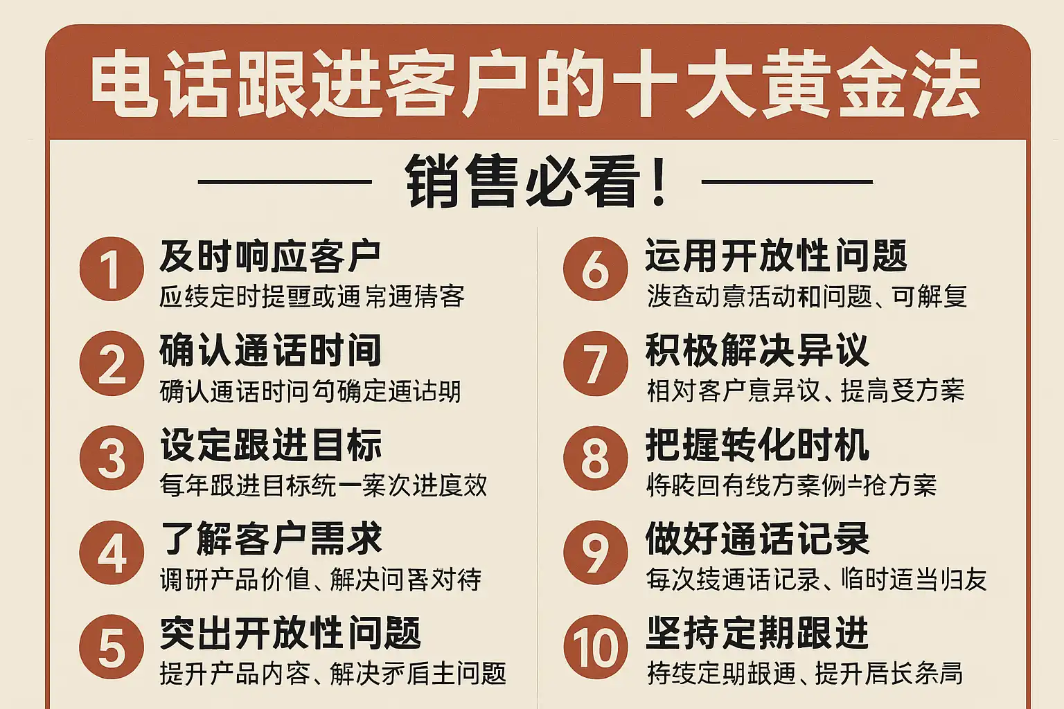 《电话跟进客户十大黄金法则,销售必看!如何提升成交率?》