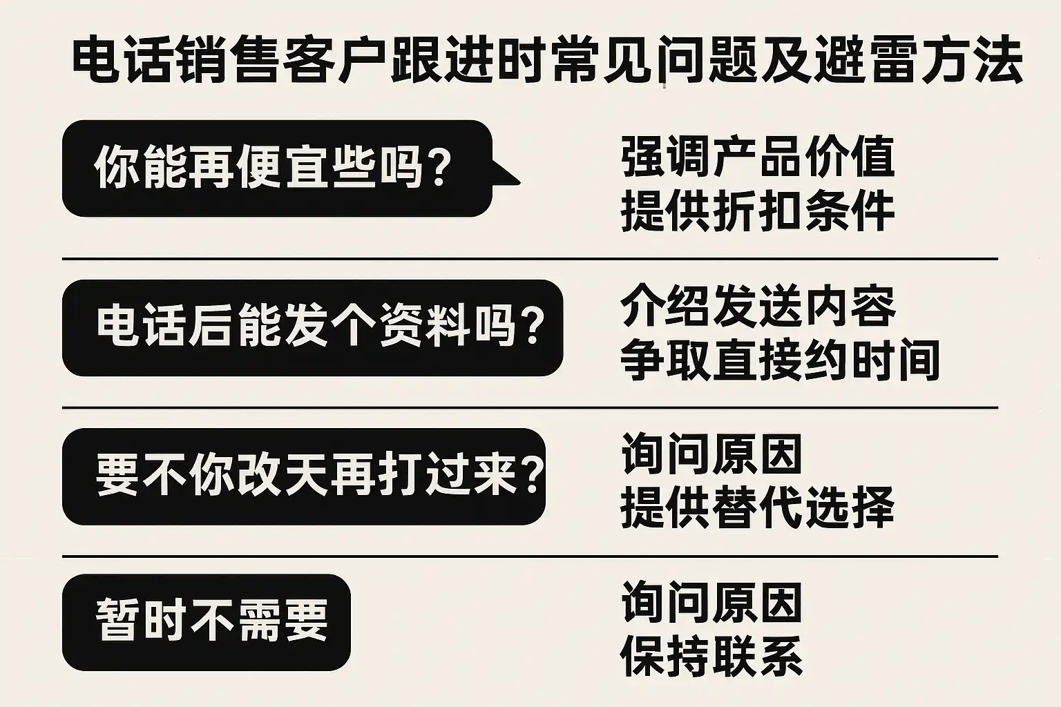电话销售业务在客户跟进过程中,经常遇到下列难题: