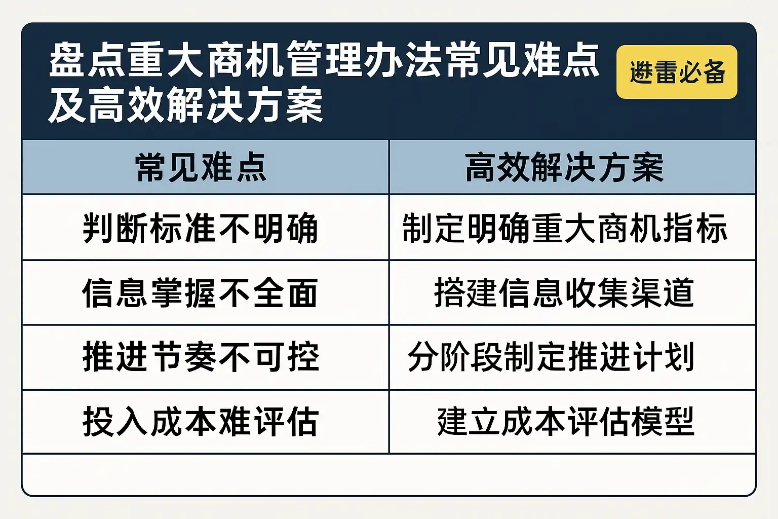 商机管理办法常见难点主要包括: