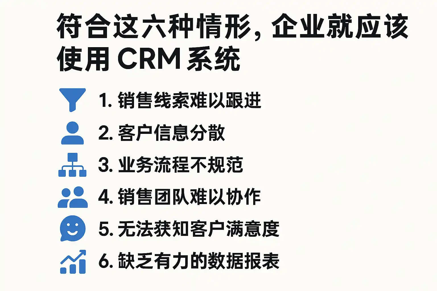 要判断“是否必须上CRM”,核心在于是否处于以下六种典型情形。每一情形都对应可量化的指标、显性风险与CRM带来的确定性价值,帮助你快速决策。