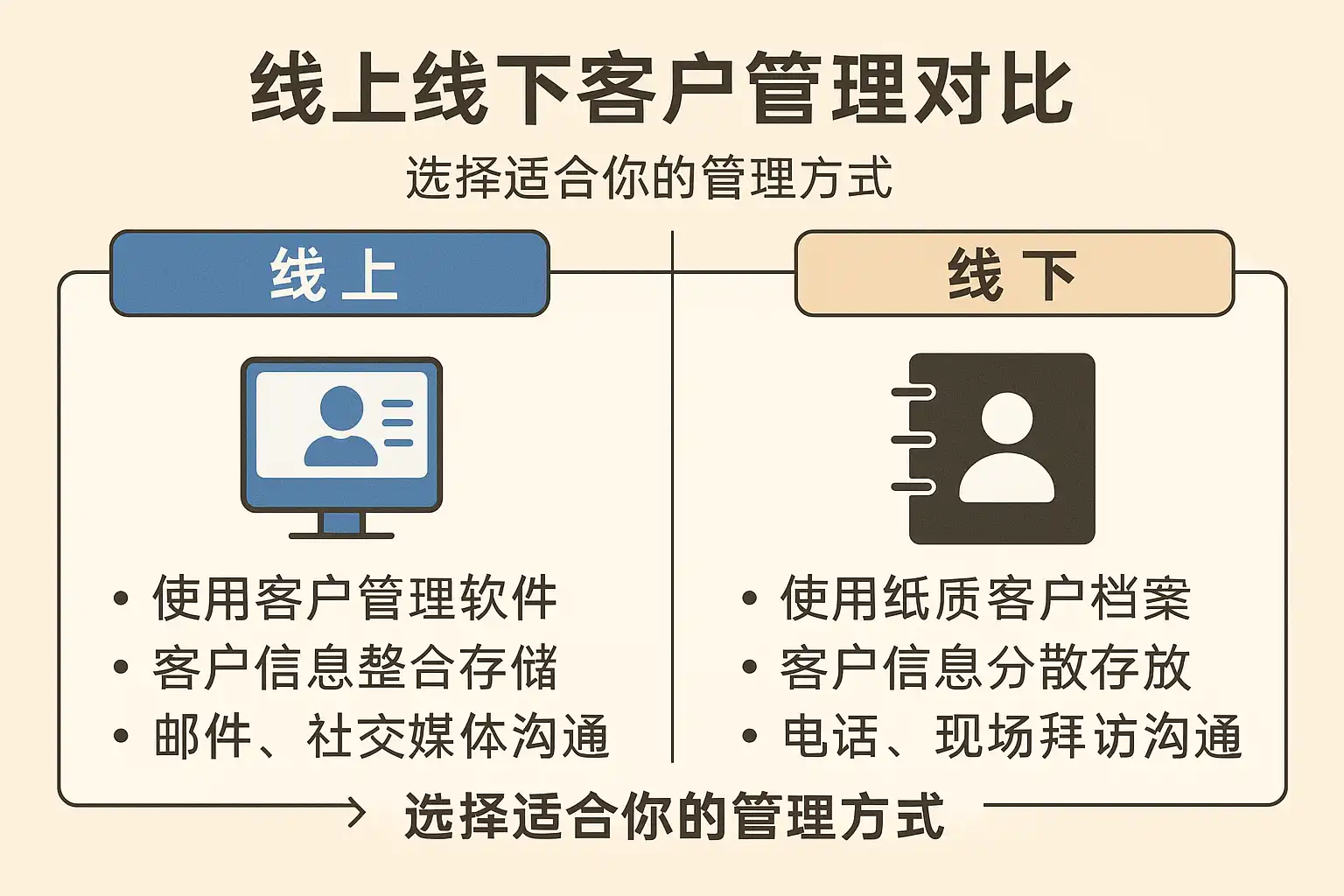 客户管理线上线下对比,哪种方式更适合你?选择最佳客户管理策略!