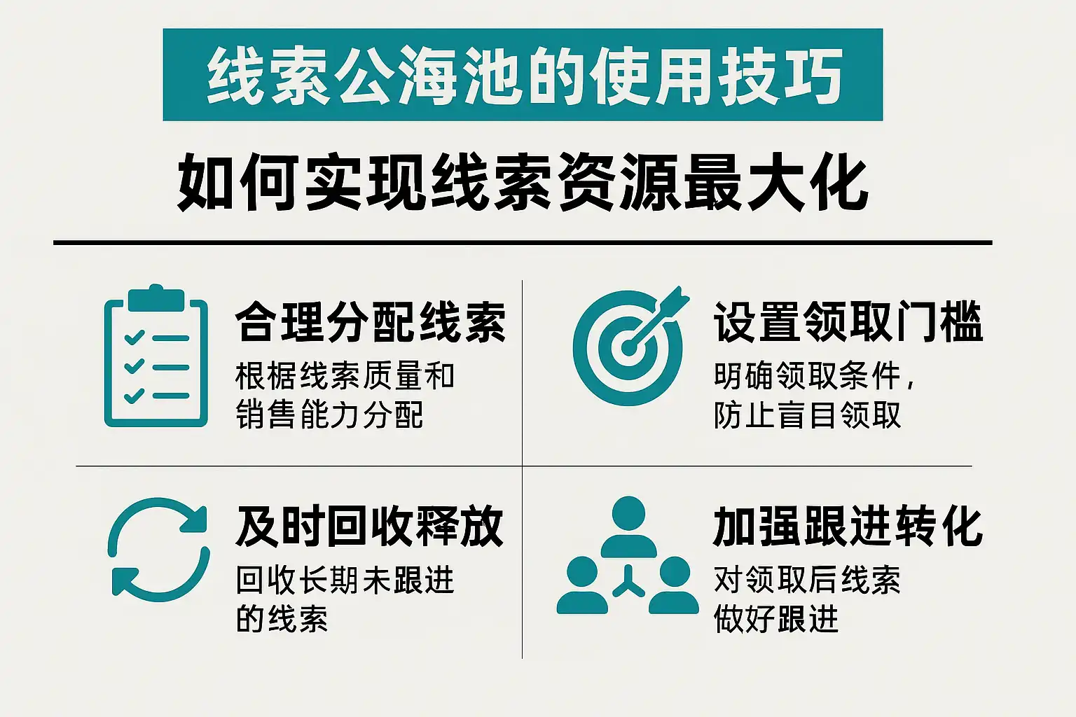 我在使用线索公海池时,想知道具体有哪些技巧可以最大化利用线索资源,避免重复跟进和资源浪费?
