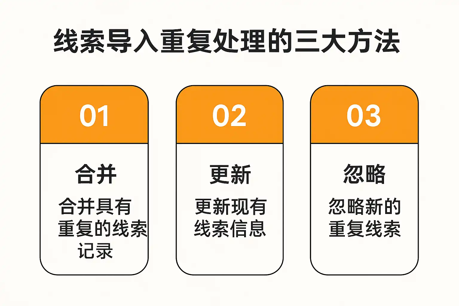 我想知道目前主流的线索导入重复处理方法都有哪些?能不能详细介绍三种常用的方案,方便我选择合适的技术?
