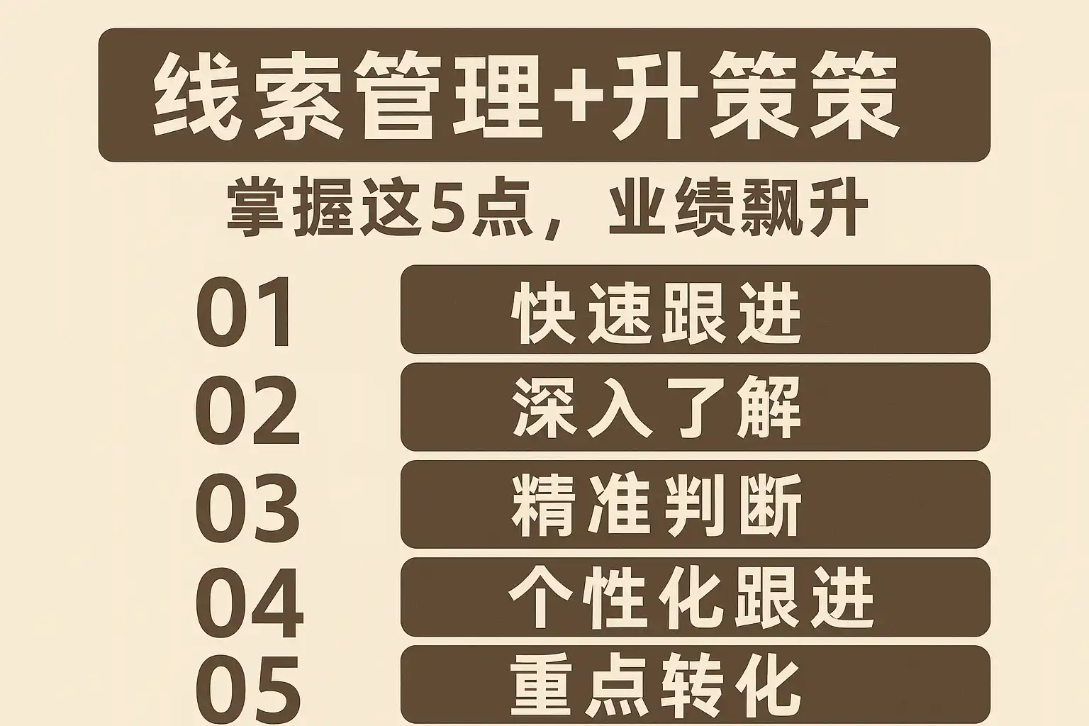 要让线索成为业绩增长的“加速器”,需要把分散的动作串成一条可度量、可优化的运营链路。以下是“五点秘诀”的结构化解读: