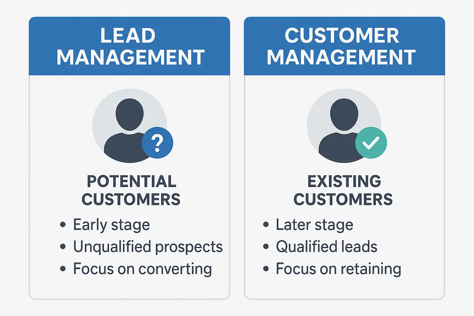 我经常听到销售团队提到线索管理和客户管理,但不太清楚它们具体有什么区别。为什么要区分这两者?它们分别解决了什么样的问题?