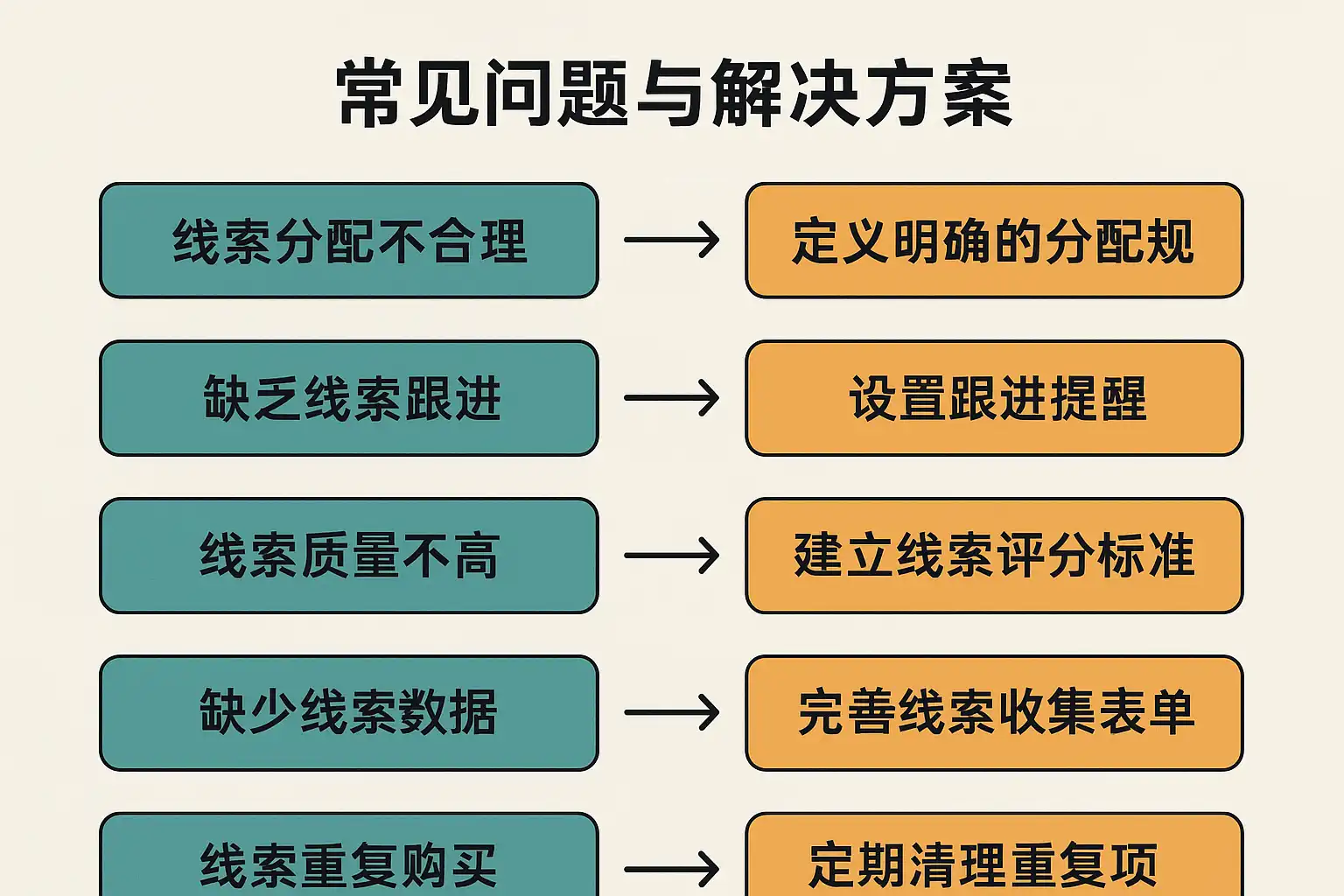 线索管理流程中常见的线索难题及解决方案包括: