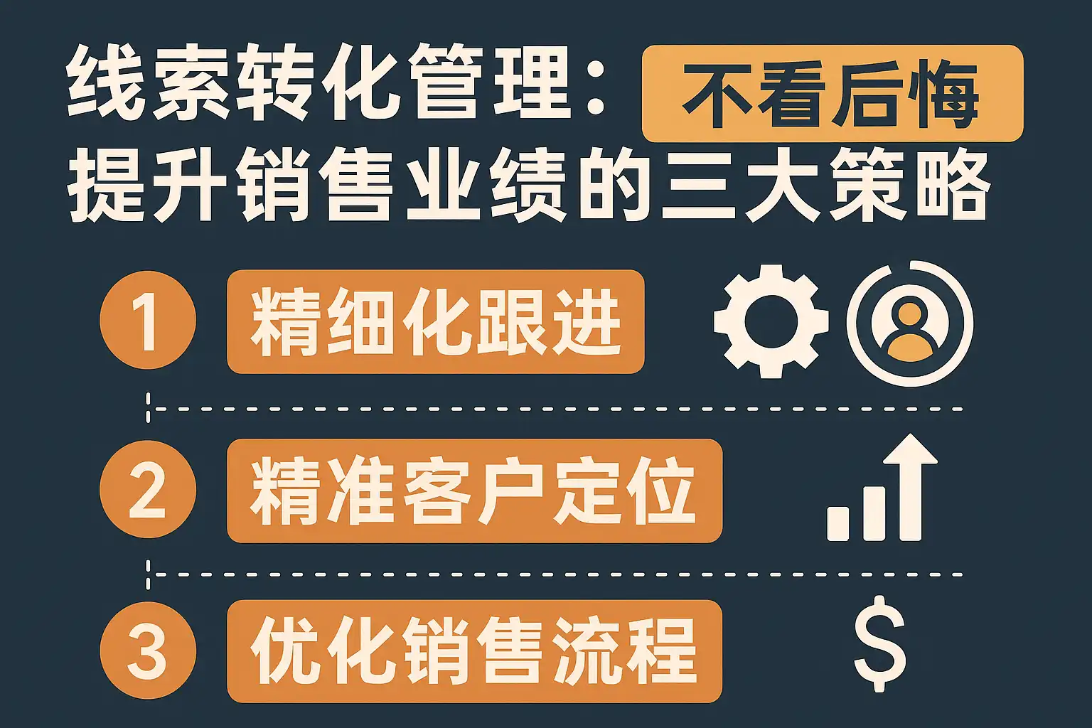 要提升业绩,先明确定义“线索转化”的关键节点与收益模型。线索管理的价值体现在:提高有效商机数量、缩短销售周期、提升赢单率和客单价。三大策略对应三个核心效果: