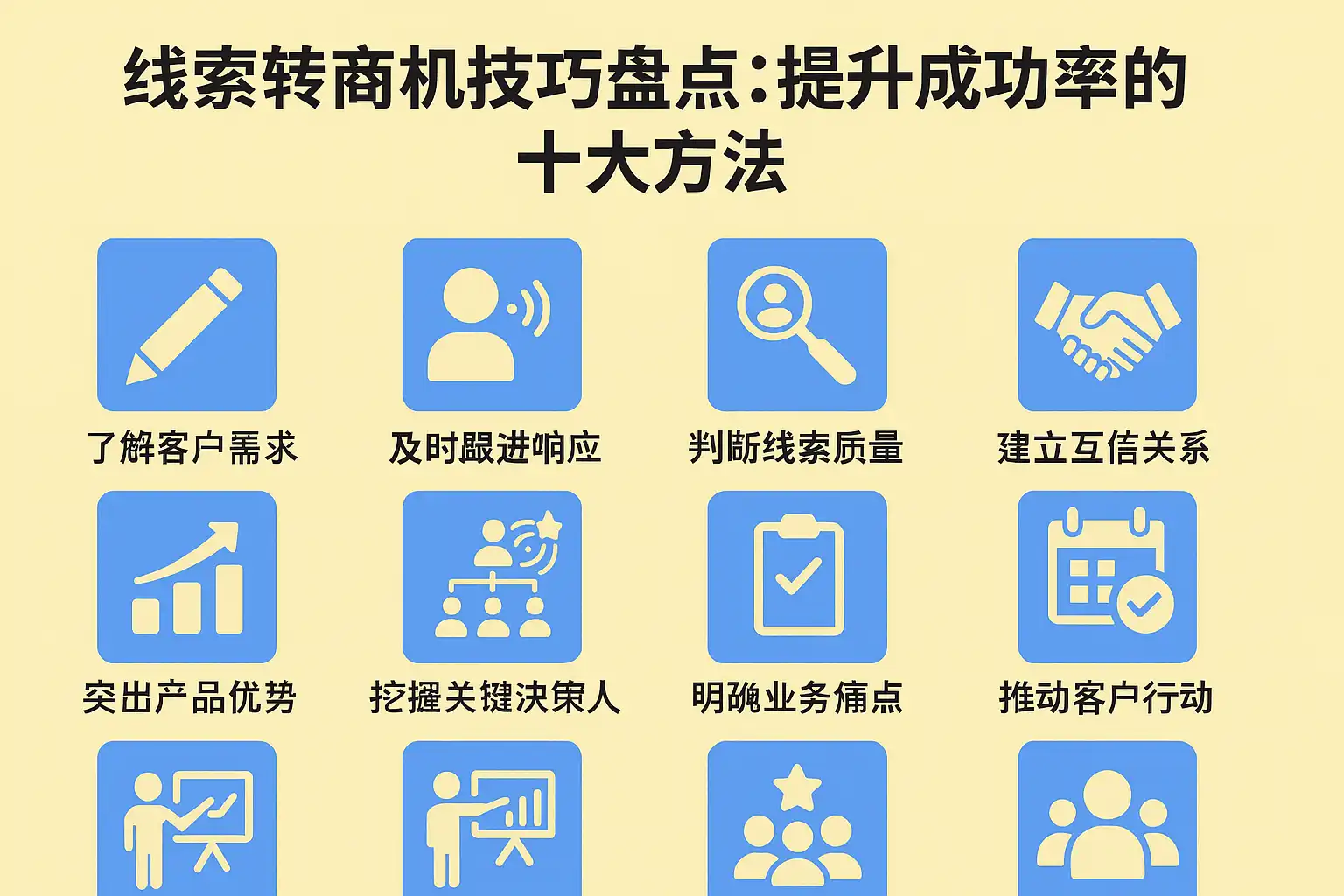 提升线索转商机成功率的十大方法包括: