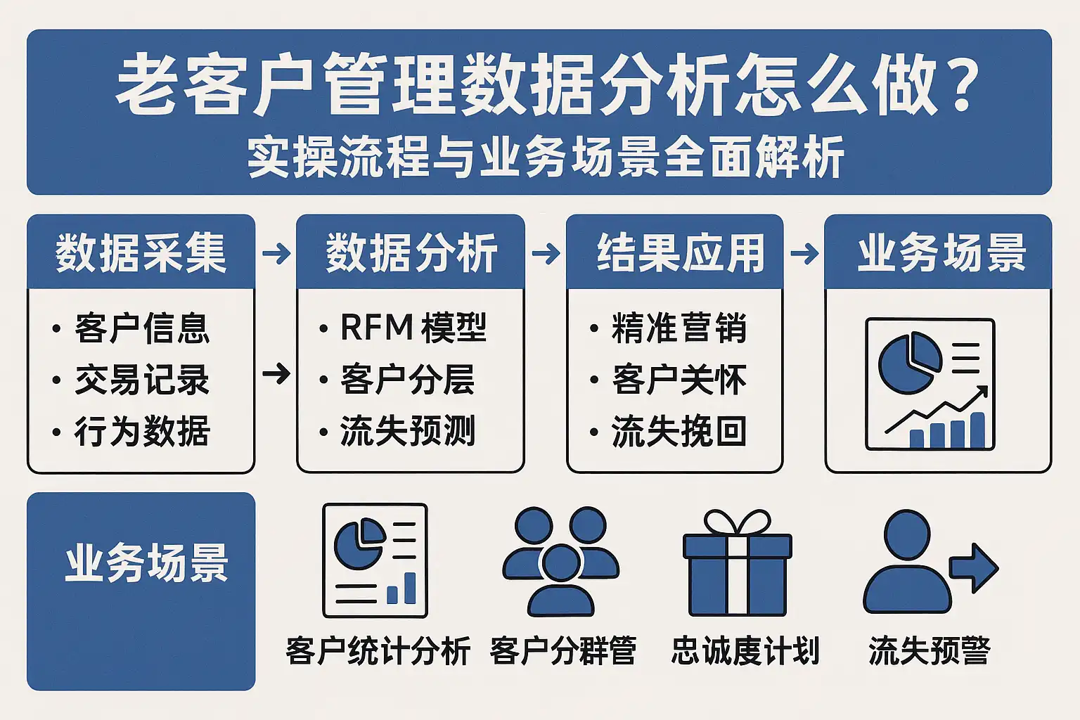 我想做老客户管理数据分析,但不清楚具体的流程和步骤。能否详细讲解从数据收集到价值提升的完整实操流程?