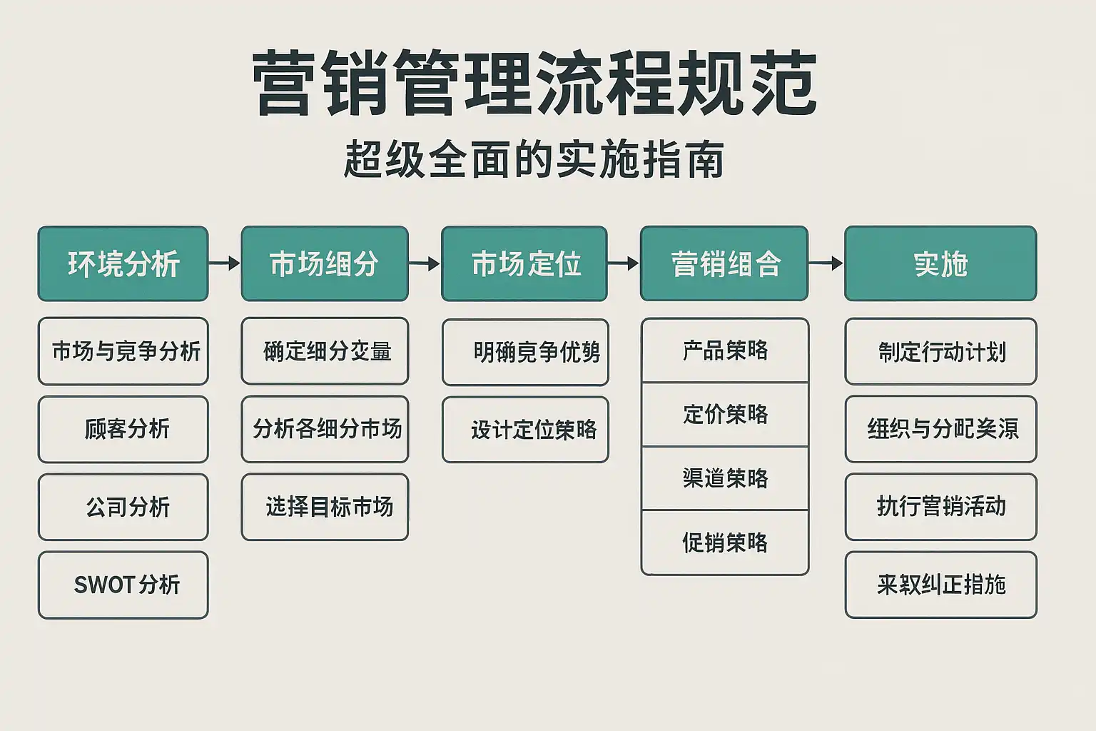 作为一名市场新人,我经常听到营销管理流程规范这个词,但具体包含哪些核心步骤呢?我想了解完整的流程框架,才能更好地参与项目。