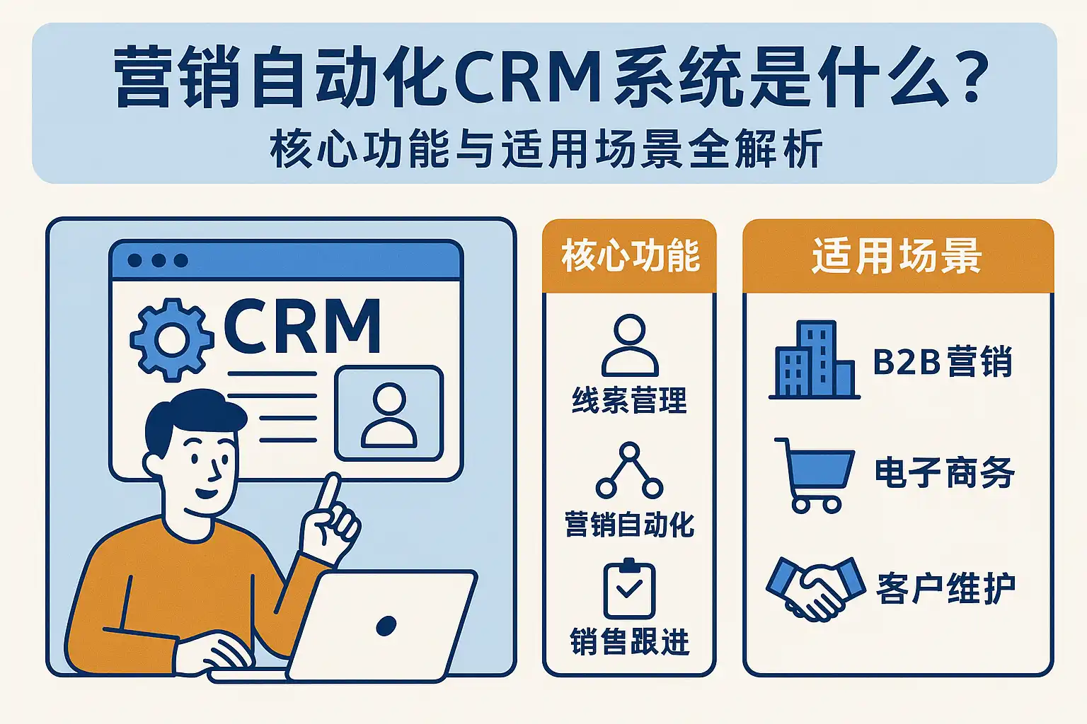 - 营销自动化CRM的价值在于让“获客—培育—销售—成交—复购”形成可度量的闭环,并以自动化替代重复性劳动,释放团队对高价值客户的关注。