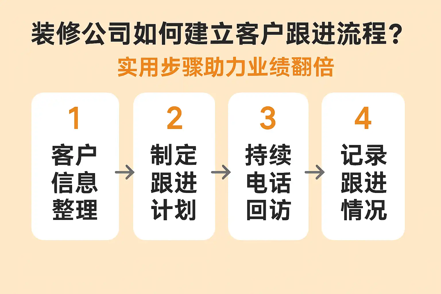 装修公司客户跟进助力业绩翻倍的实用步骤包括: