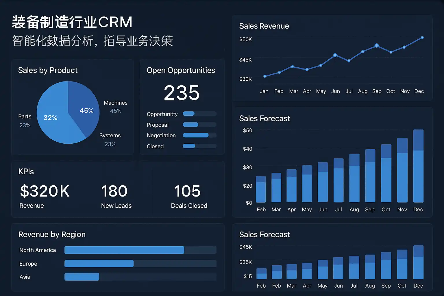 装备制造行业CRM智能化数据分析通常包含以下核心功能: