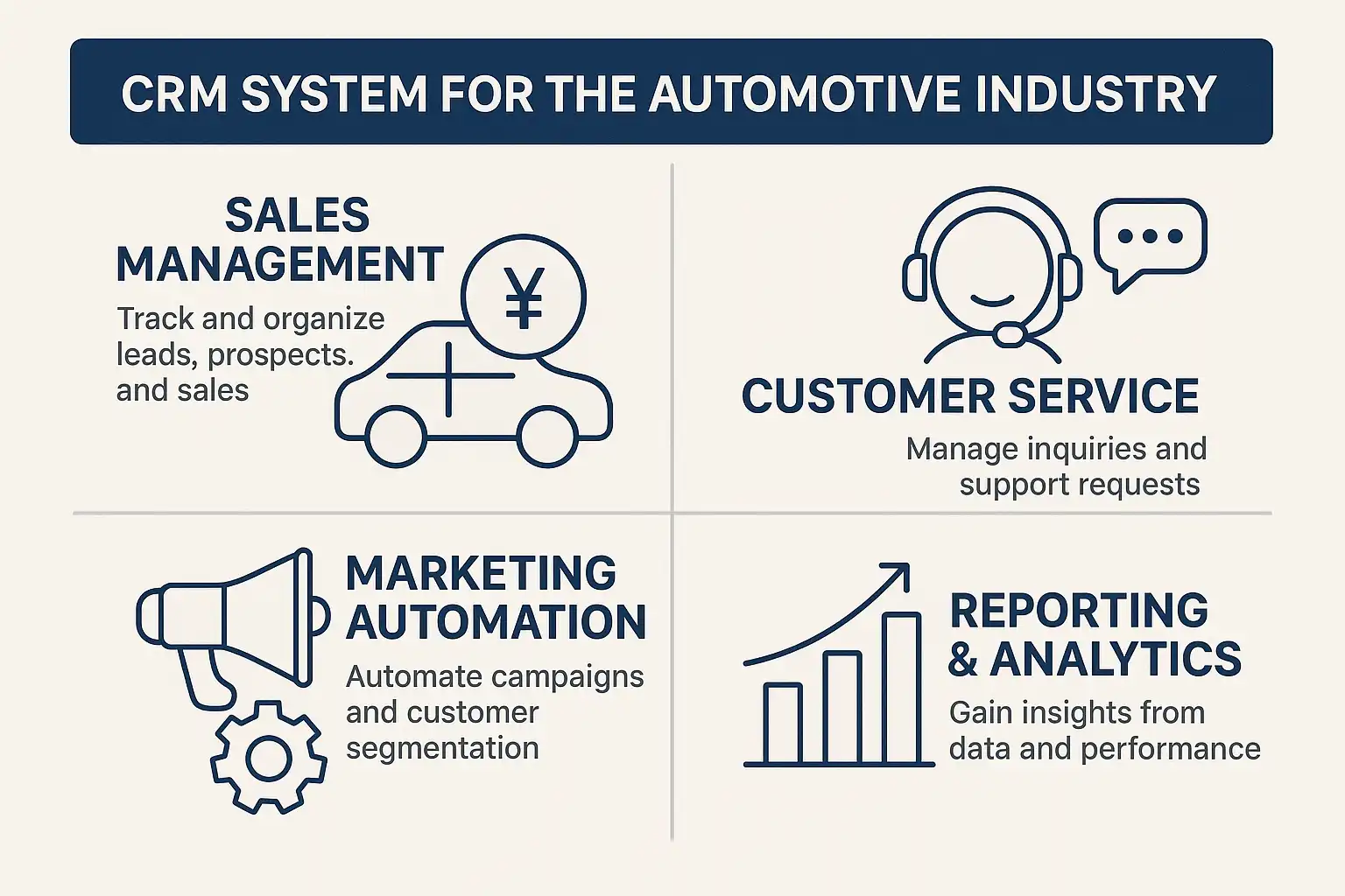 我最近在了解汽车行业的CRM系统,但不太清楚它具体具备哪些核心功能。能详细说明一下汽车行业CRM系统的主要功能模块吗?