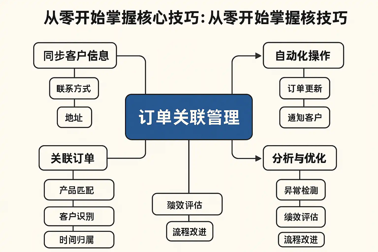 我刚开始接触订单关联管理,感觉概念有点模糊,不知道核心技巧具体指哪些内容?能不能帮我理清楚,方便快速上手?