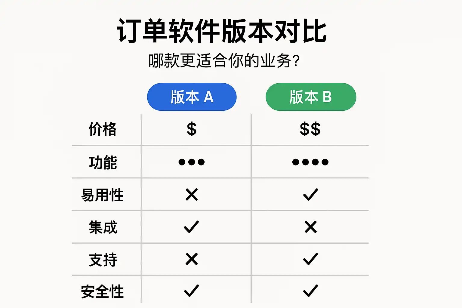 订单软件版本对比,哪款更适合你的业务?订单软件选择指南,你选对了吗?