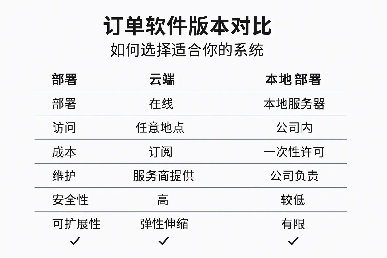 选择订单软件版本时,可依据以下标准: