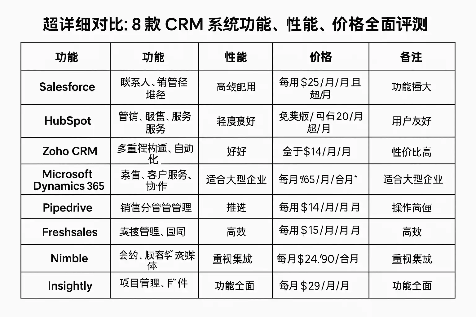 - 评测范围:8款主流CRM(Salesforce、Microsoft Dynamics 365、HubSpot、Zoho、Pipedrive、Freshsales、销售易、简道云CRM系统)。