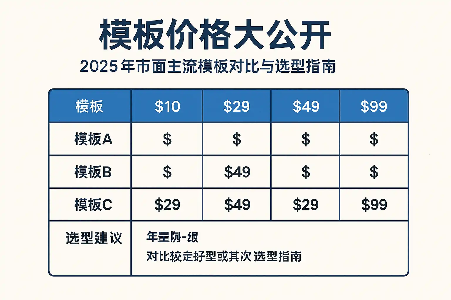 二、2025市面主流模板类型与价格区间(大盘概览)