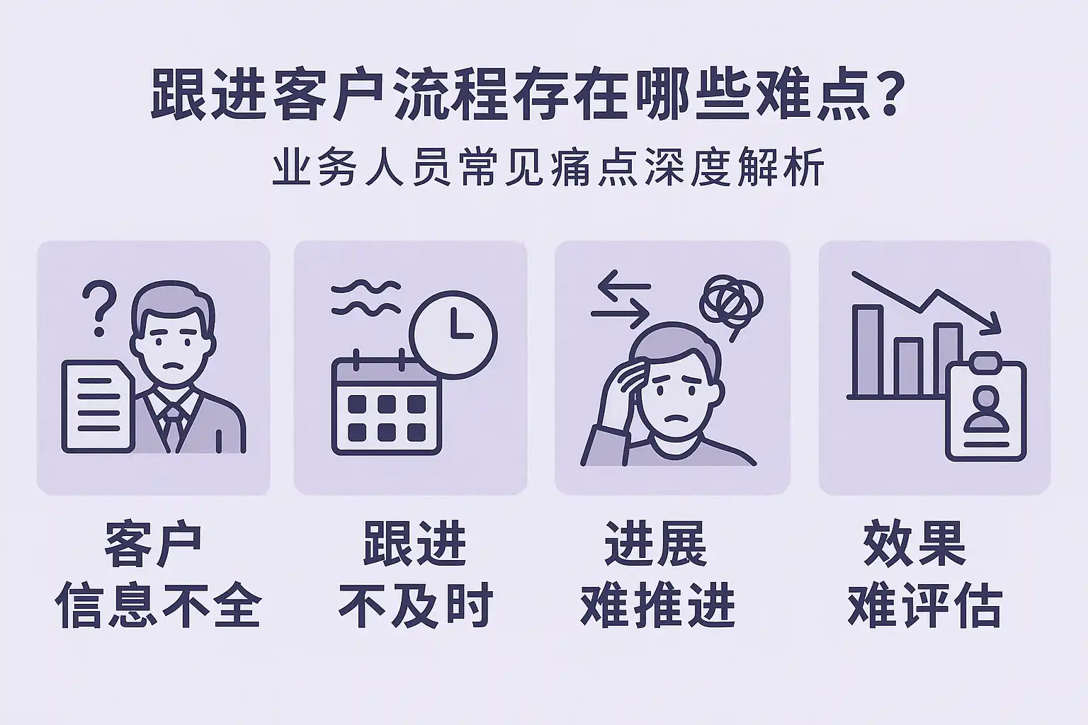 - 跟进节奏把控困难:难以判断何时跟进合适,导致客户流失。