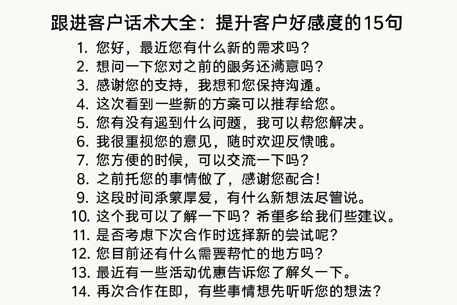 (注:完整15句可根据具体行业定制)