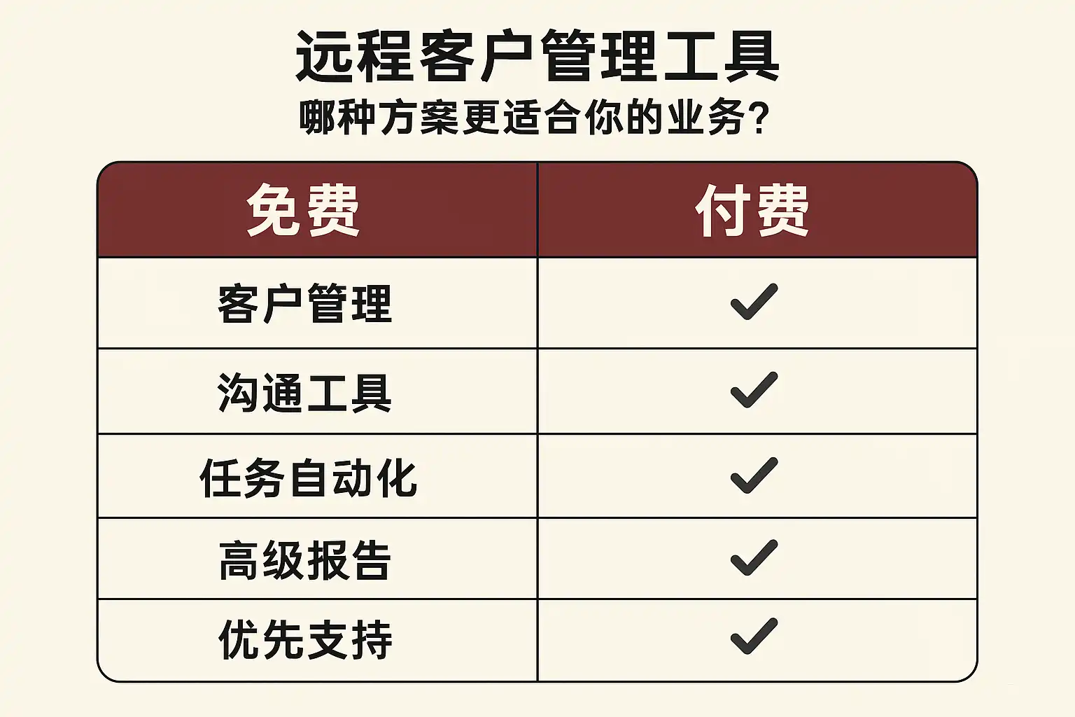 远程客户管理工具免费版与付费版对比,哪种方案更适合你的业务?