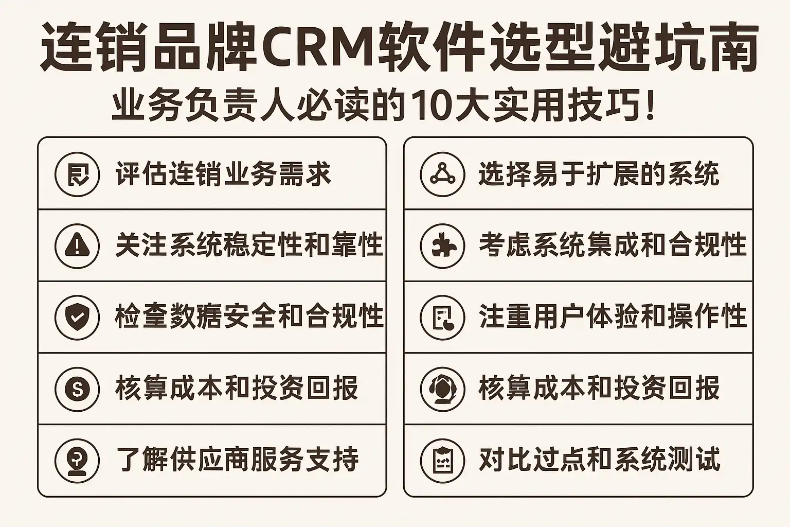 《连锁品牌CRM软件选型避坑指南,业务负责人必读的10大实用技巧,如何选出最合适的CRM?》