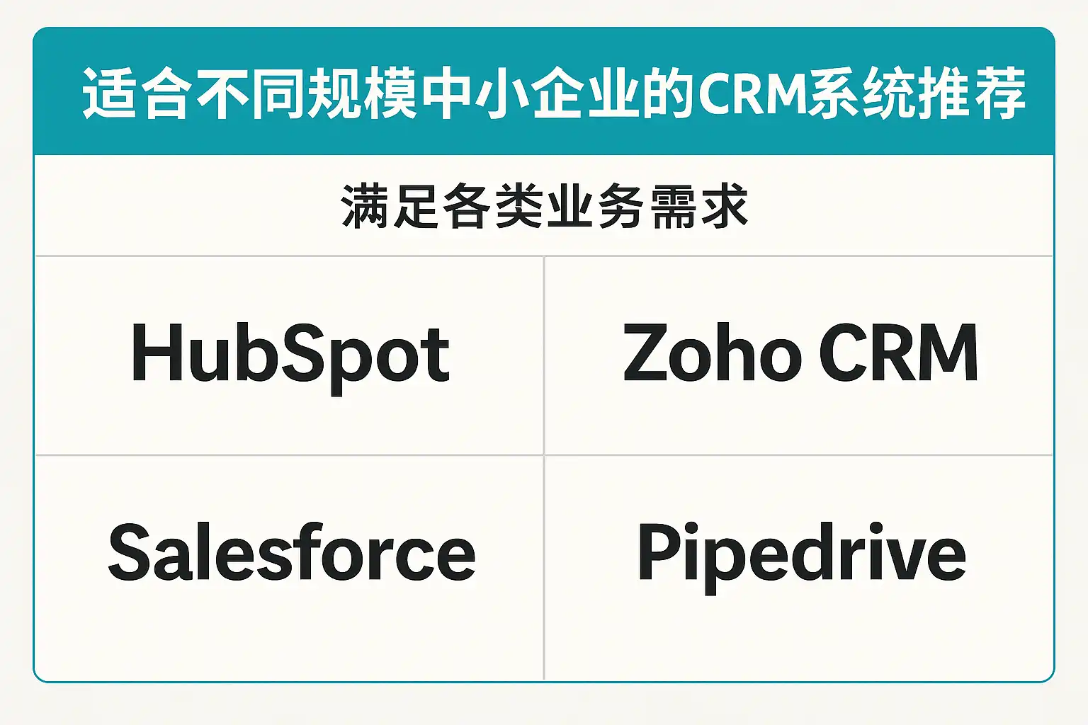 - Zoho与HubSpot适合外贸或营销驱动企业,强调邮件、内容营销与海外生态。