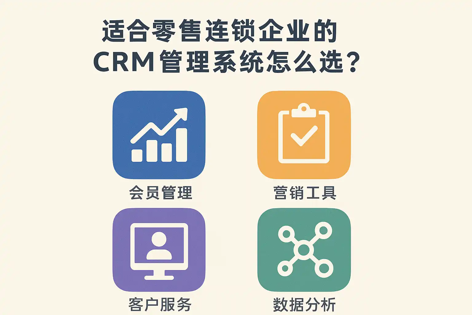 - 连锁零售以门店流程+会员营销为重点,优先考虑简道云crm系统等可快速定制的方案。