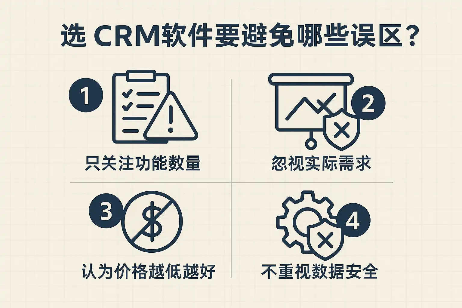 作为一名企业管理者,我在选购CRM软件时总是担心会踩坑,比如功能过剩或不匹配,导致资源浪费。我想了解有哪些常见误区是需要特别注意的?