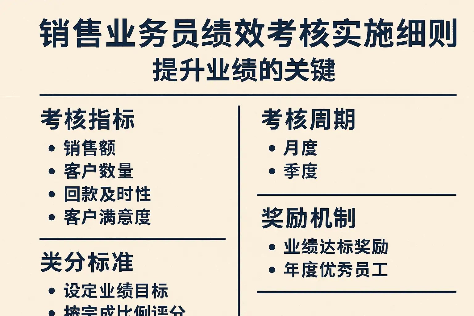 通过绩效考核细则提升销售业绩,可以从以下几个方面着手: