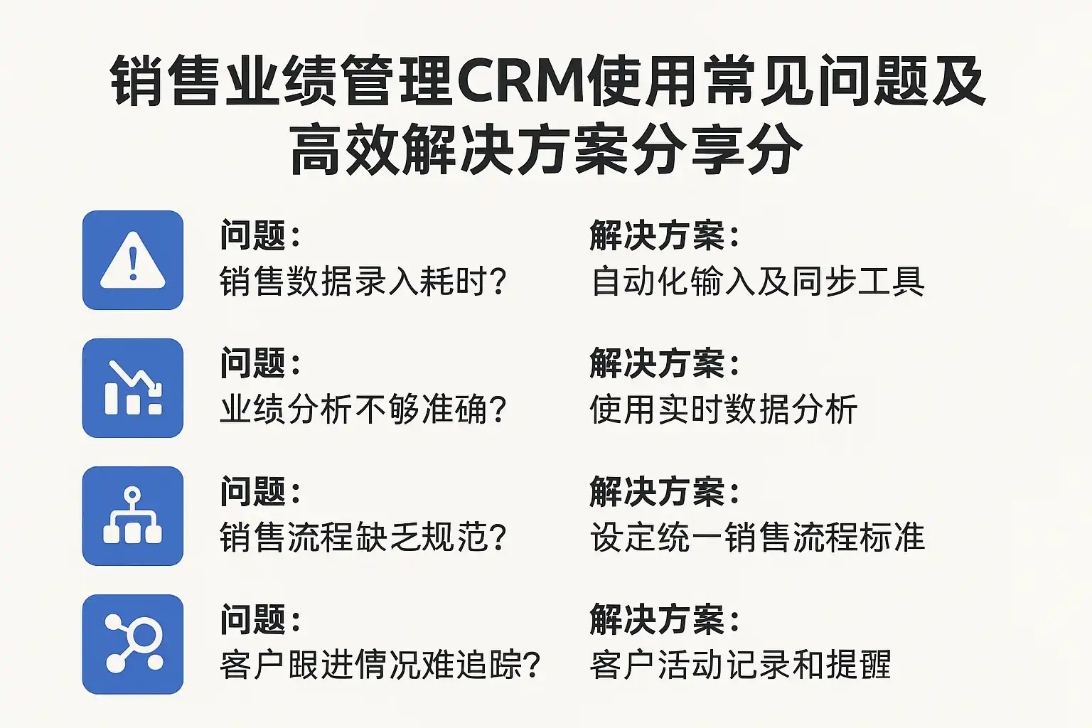 针对销售业绩管理CRM使用中的常见问题,推荐以下解决方案: