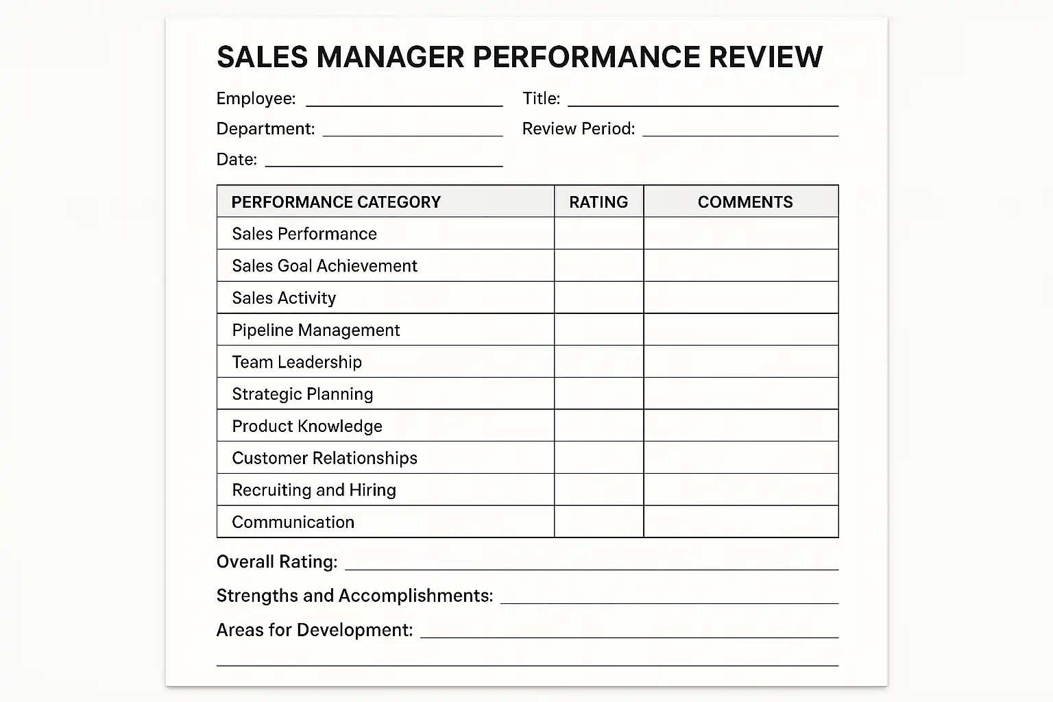 - 量化指标,如“销售目标完成率达到95%以上算优秀”,提供明确评价标准。
