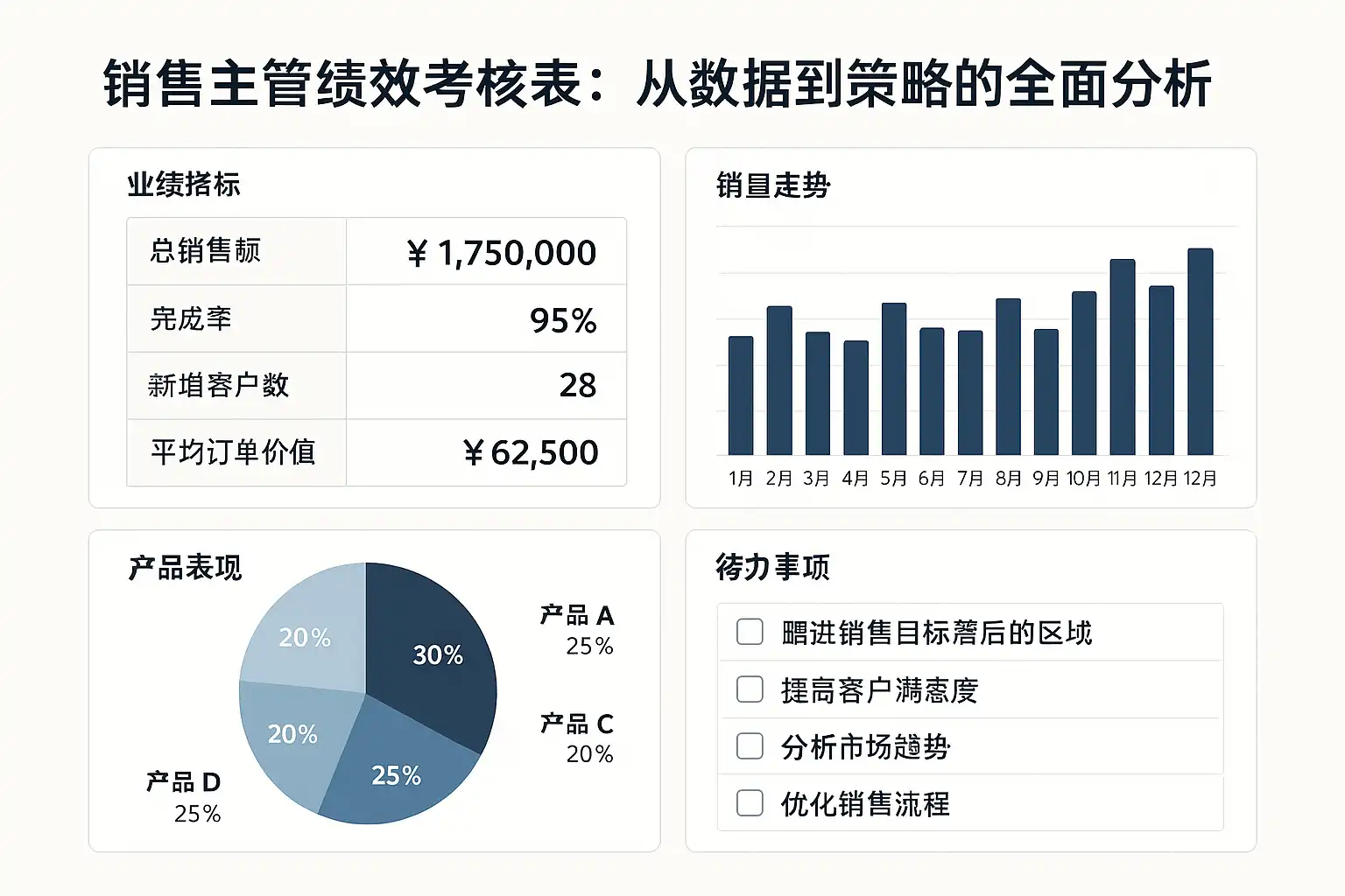 例如,某大型企业实施数据驱动考核体系后,半年内销售额由500万元提升至600万元,增长20%。这种量化效果证明科学的绩效考核结合数据分析,能有效提升销售主管管理效率和销售团队整体业绩。