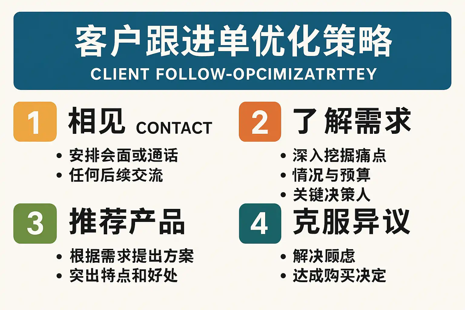 客户跟进单优化策略的关键要点包括: