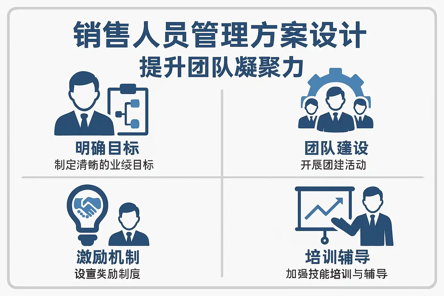 - 目标设定与分解:将团队总体销售目标分解到个人,确保每位成员有清晰的职责和贡献方向。