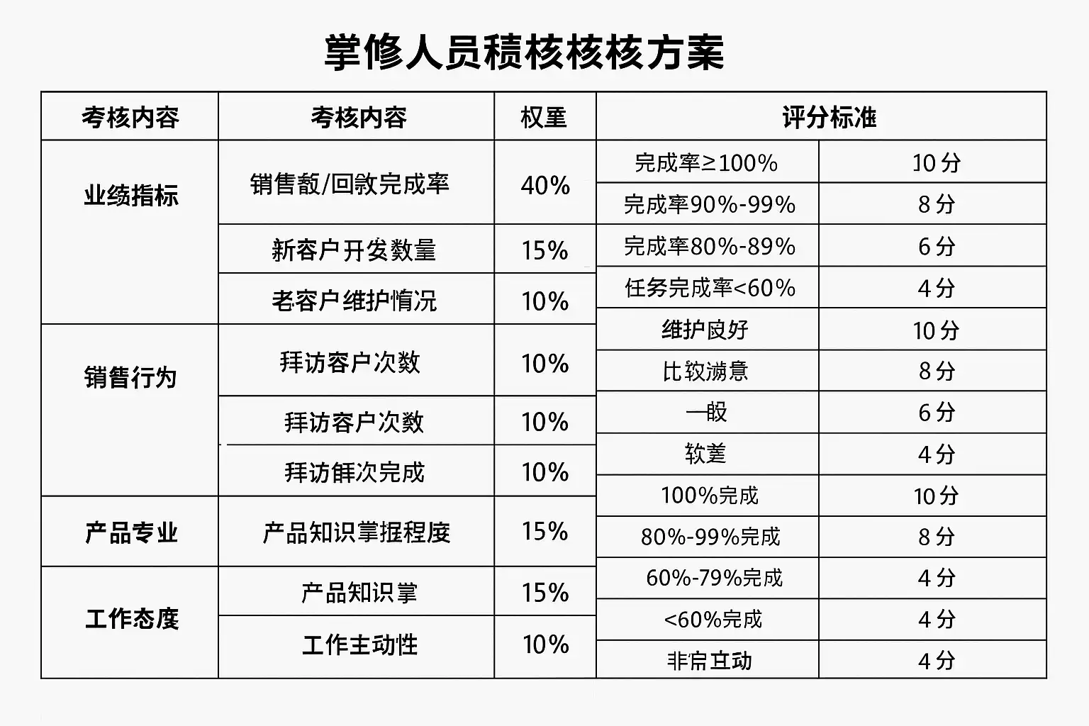 - 考核指标透明:让销售人员清楚了解考核内容及评分标准,避免模糊信息导致不公。