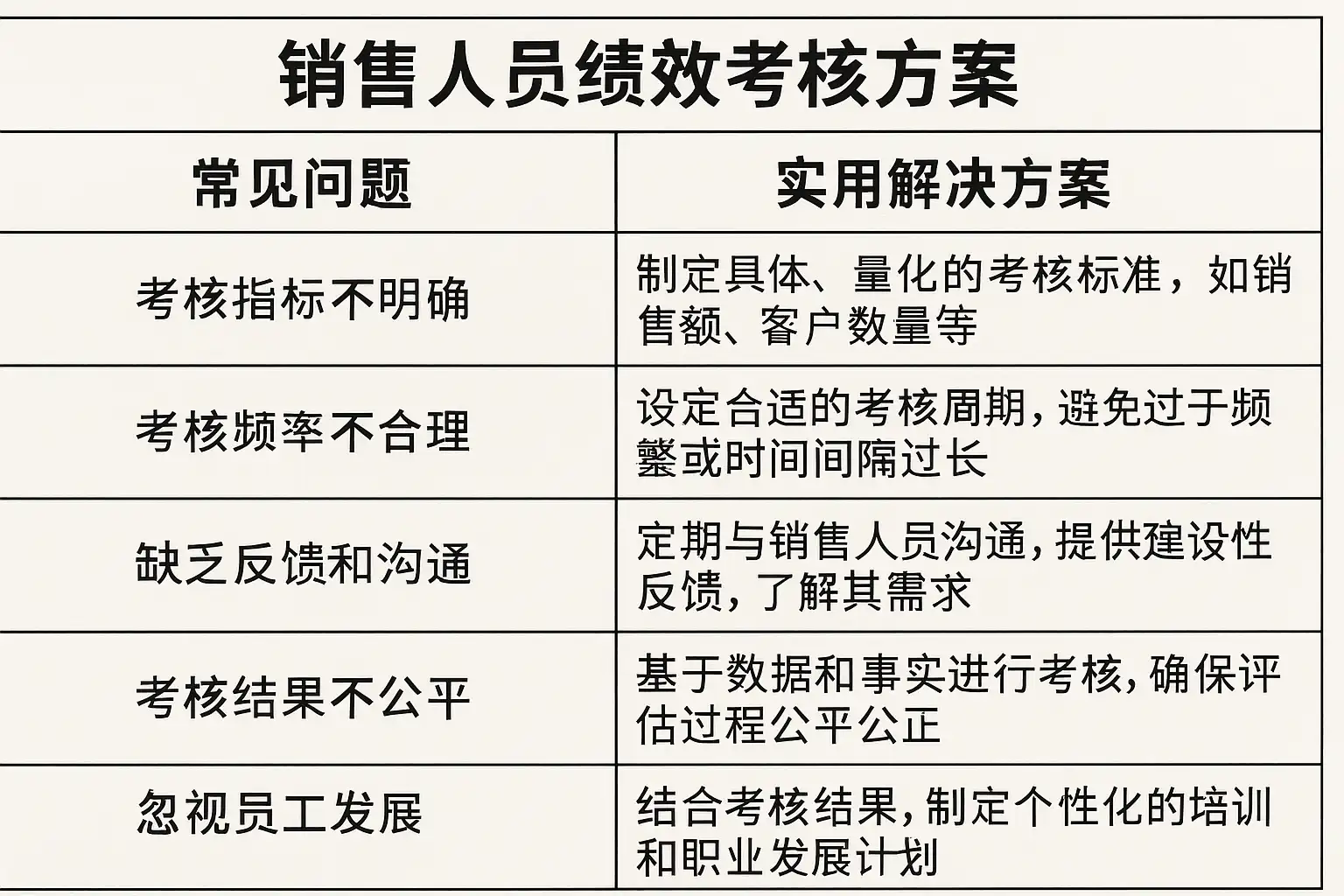 销售人员绩效考核方案表格详解,常见问题如何有效解决?