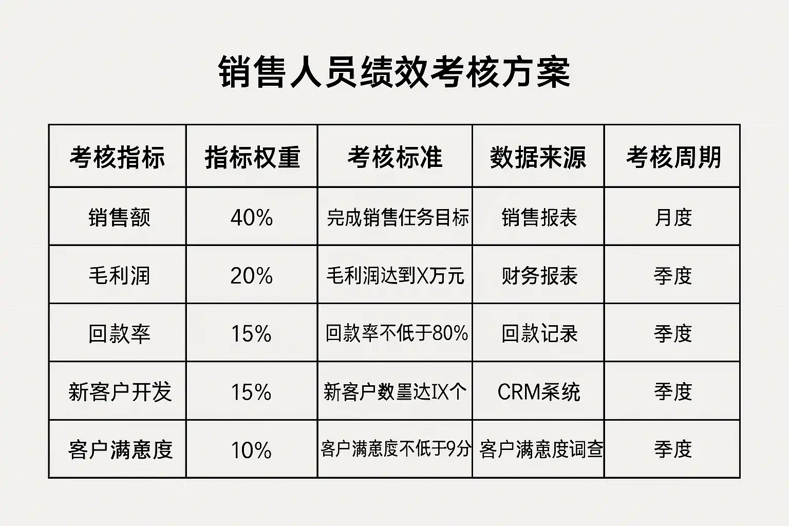 销售人员绩效考核方案表格设计中如何合理分配指标权重?