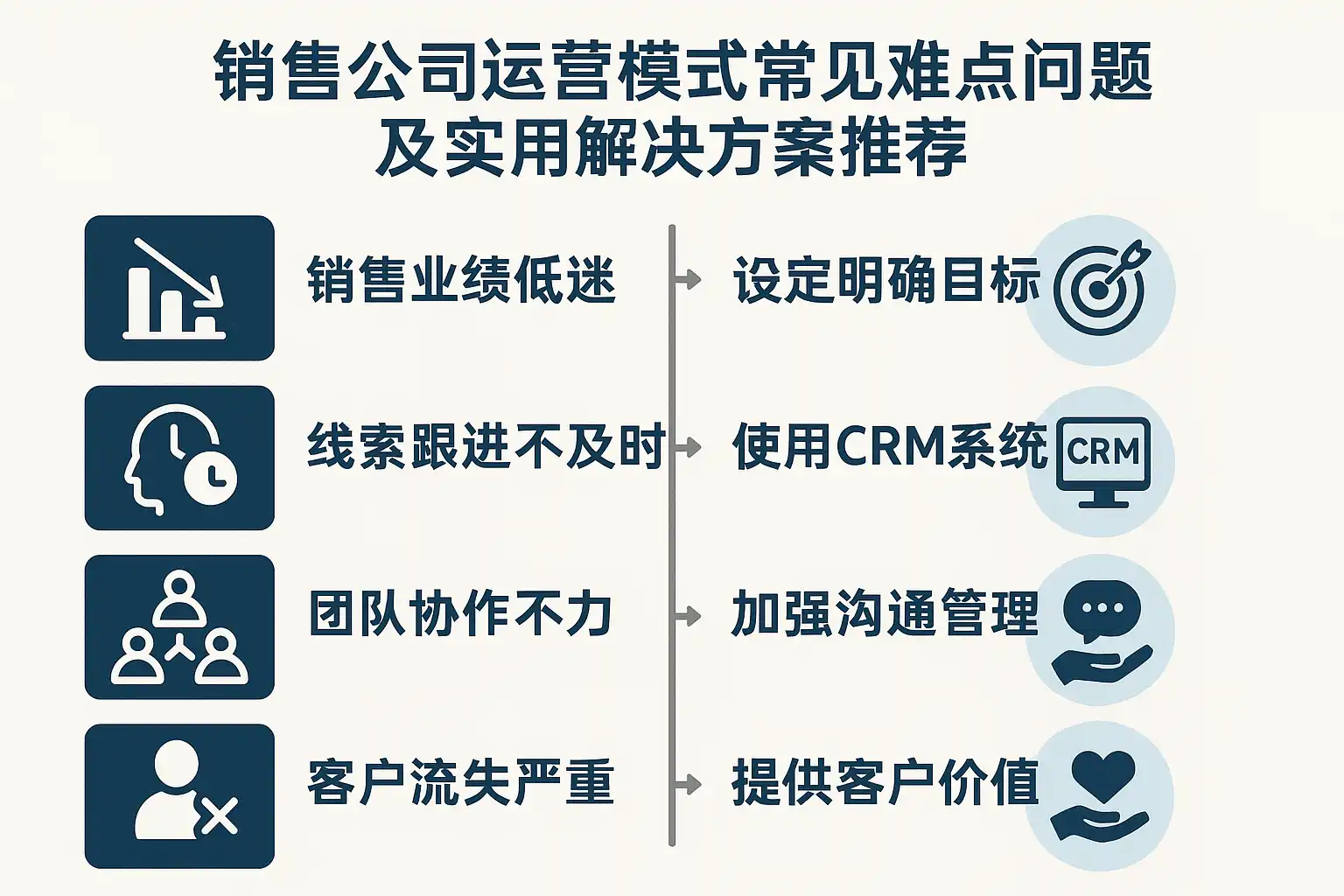 - 协同断点:市场、销售、售前、交付、财务交接信息缺失,责任模糊。