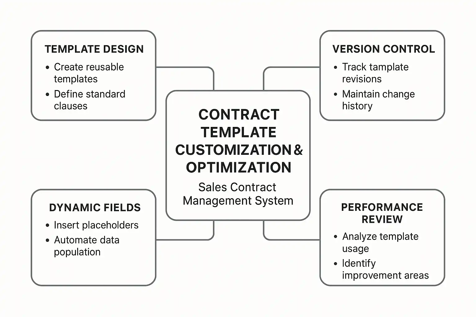 销售合同管理系统模板定制通过标准化合同结构和自动填充关键信息,显著提升合同生成效率。具体优化策略包括:
