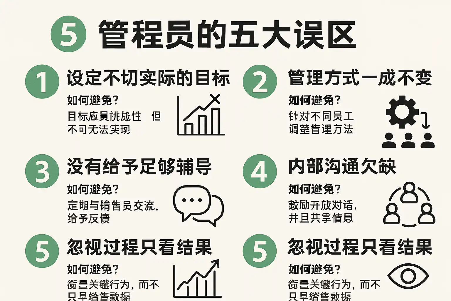 作为一名销售团队管理者,我经常听说一些管理误区会影响团队绩效,但具体有哪些常见的误区呢?了解这些误区对我提升管理水平很重要。