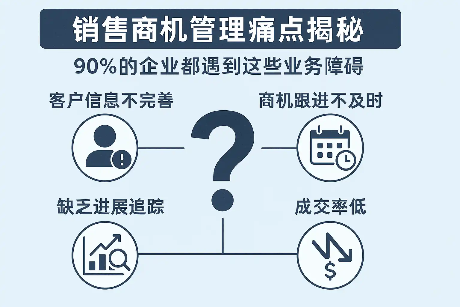 我在企业销售过程中经常遇到商机无法有效跟进的情况,感觉团队效率低下。销售商机管理的主要痛点具体包括哪些方面?为什么这些问题会导致业务障碍?