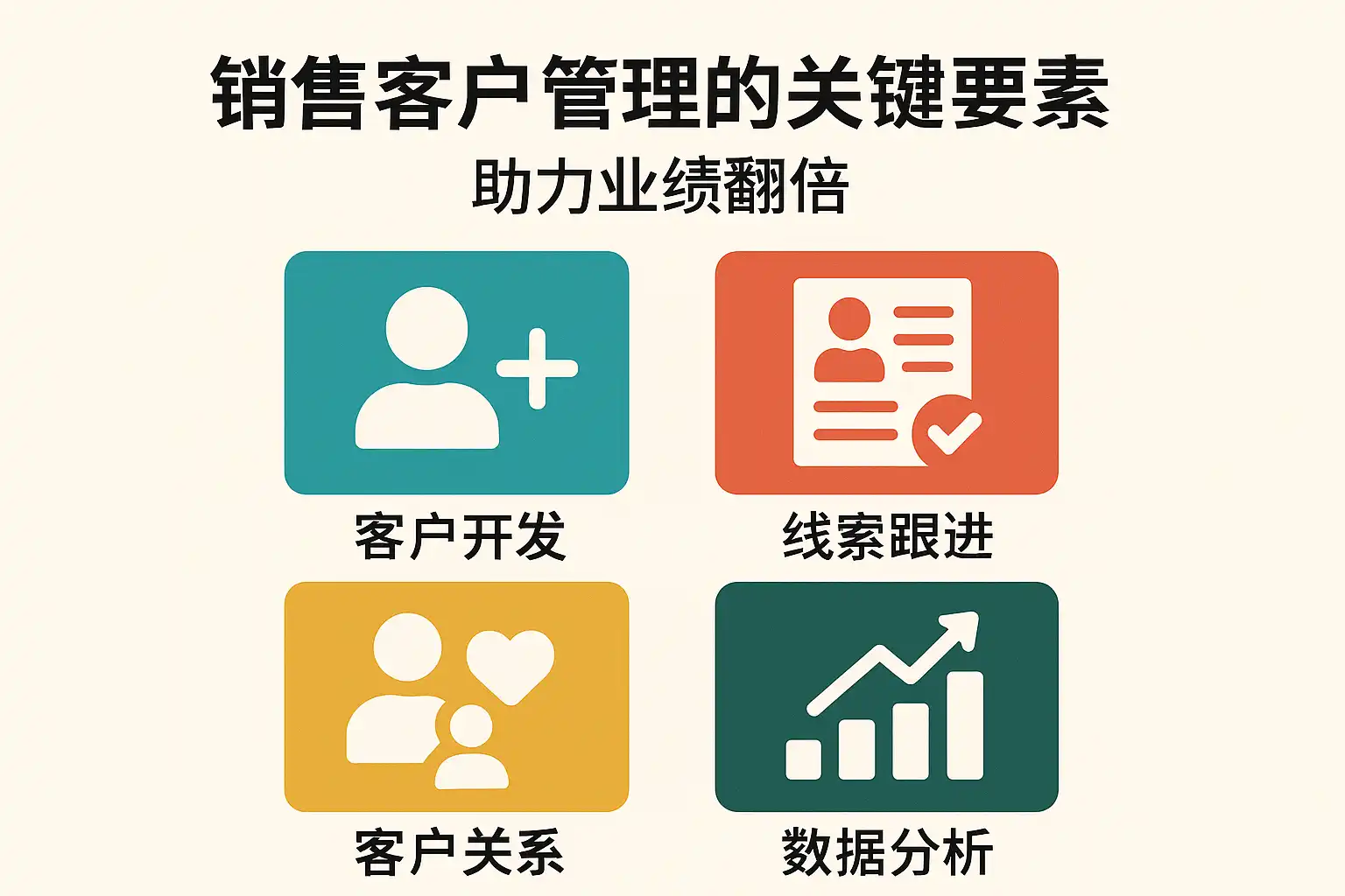 业绩翻倍的秘诀在于把客户管理做实:1、精确客户分层与价值聚焦、2、标准化销售管道与节奏、3、以数据驱动转化与复购、4、用CRM实现流程自动化、5、强化客户成功与二次增长。通过明确目标、量化指标和可复用的SOP,把“线索-商机-成单-续约/增购”全链路缩短并提质,配合内容资产与激励机制,持续复盘优化,即可在一个到两个销售周期内达成翻倍增长。