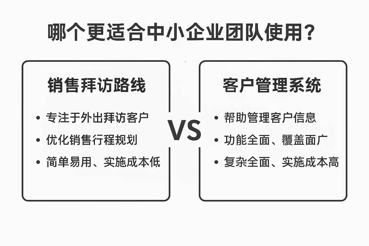 我一直不太清楚销售拜访路线和客户管理系统到底有什么区别,尤其是它们在中小企业团队中的应用场景和优势分别是什么?能不能帮我详细解释一下?